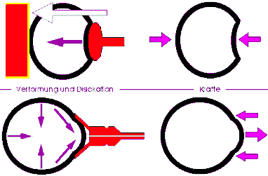 im aufrechten Bild gespiegelt wird. Durch Kompression des Bulbus gegen die