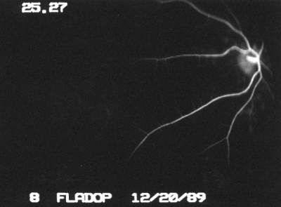 Abb. 13 Phase der Füllung der großen Aderhautgefäße (FLADOP, IOD = 68 mmHg) |