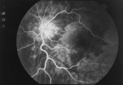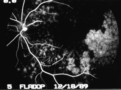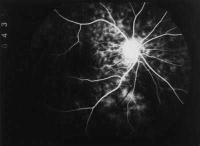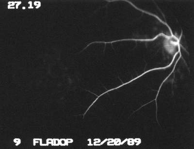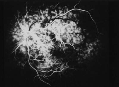 Abb. 15 Phase der diffusen Aderhautfüllung (FLADOP, IOD = 45 mmHg) |