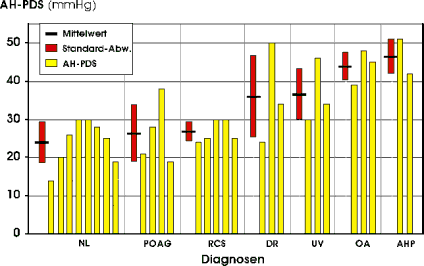 Abb. 42 Perfusionsdruckspanne der Aderhaut (AH-PDS) bei verschiedenen ophthalmologischen Diagnosen |