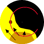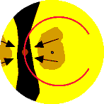 handelt. An verschiedenen Stellen des hinteren Pols, häufig in der Nähe der zuerst füllenden großen Aderhautgefäße, kommen nun die ersten Aderhautlobuli der Choriokapillaris zur Darstellung. Sie sind zunächst noch durch einen kleinen hypofluoreszenten Saum deutlich voneinander abgrenzbar. Mit der weiteren Normalisierung des intraokularen Drucks treten weitere angrenzende Aderhautlobuli hinzu und verschmelzen zu den einzelnen Aderhautsegmenten. Im Verlauf der lobulären Füllungsphase stellt sich die Anfärbung der Aderhautsegmente wie folgt dar (Abb. 14) : Im Zentrum der Aderhautsegmente sind die Aderhautlobuli bereits vollständig gefüllt und nicht mehr voneinander abgrenzbar. Die Aderhautfluoreszenz ist in diesem Gebiet homogen. Im Randbereich der Segmente finden sich noch voneinander abgrenzbare Aderhautlobuli beziehungsweise Lobuli, die gerade erst eine kleine zentrale Fluoreszenz zeigen . Auch können hier gelegenlich noch kleinere Aderhautgefäße erkannt werden. Zwischen den einzelnen Aderhautsegmenten liegen bandförmige hypofluoreszente Areale, die sich erst im weiteren Verlauf der FLADOP lobulär füllen werden. Sie bilden die Grenzen der Aderhautsegmente und markieren somit die Trennlinien zwischen unabhängigen Endstromgebieten der Aderhaut. Sie sind identisch mit den von Hayreh beschriebenen ' Wasserscheiden ' ('Watershetzones', Hayreh 1983a, 1990) Lage, Größe und Form der Aderhautsegmente und der Verlauf der Wasserscheiden haben eine hohe Variabilität. Fast regelmäßig erkennt man eine senkrechte Wasserscheide, die in der Nähe der Papille oder Makula verläuft und den Fundus in eine mediale und temporale Hemisphäre teilt. In der temporale Hemisphäre selbst können sich mehrere, manchmal bis zu 5, Aderhautsegmente darstellen. Anhand der Ausdehnung der Aderhautsegmente und der Lage der Wasserscheiden können die FLADOP's verschiedenen Füllungstypen zugeordnet werden (s.u.). |